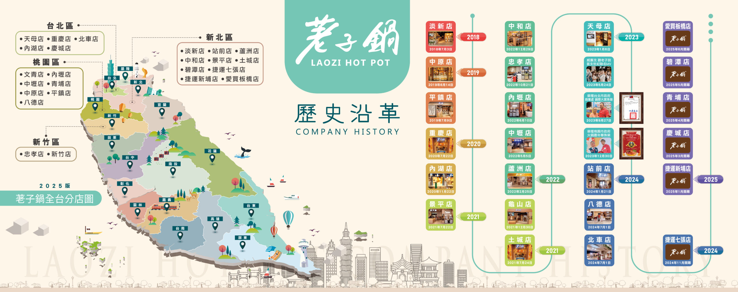 荖子故事ABOUT LAOZI 荖子鍋是一間鏈接了文化、歷史與感情的店。 老子曾說:「治大國若烹小鮮」。眾口雖難調,唯有「鮮」字可解也。老子在名言中,揭示了治國與烹飪的哲理,而「荖子鍋」便將此哲理和精神體現於餐飲空間中。 雅緻的空間規劃,藝品的氛圍塑造,希望為消費者帶來愜意與舒適兼具的用餐體驗-「慢慢咀嚼,細細嚐鮮」。 荖子鍋餐飲集團,願在葷素皆宜的鮮美中,提供一款人生五味,以及些許的古典情懷。